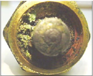 The end view of a solenoid valve from an evacuation machine, notice the hardened particles of another stop leak product.  These granular particulate float around in the system until they attach to a part or get trapped in a filter or expansion valve.  When that happens, system efficiency is reduced or even stopped and another repair is required to remove the bad sealer and the parts that have been damaged.